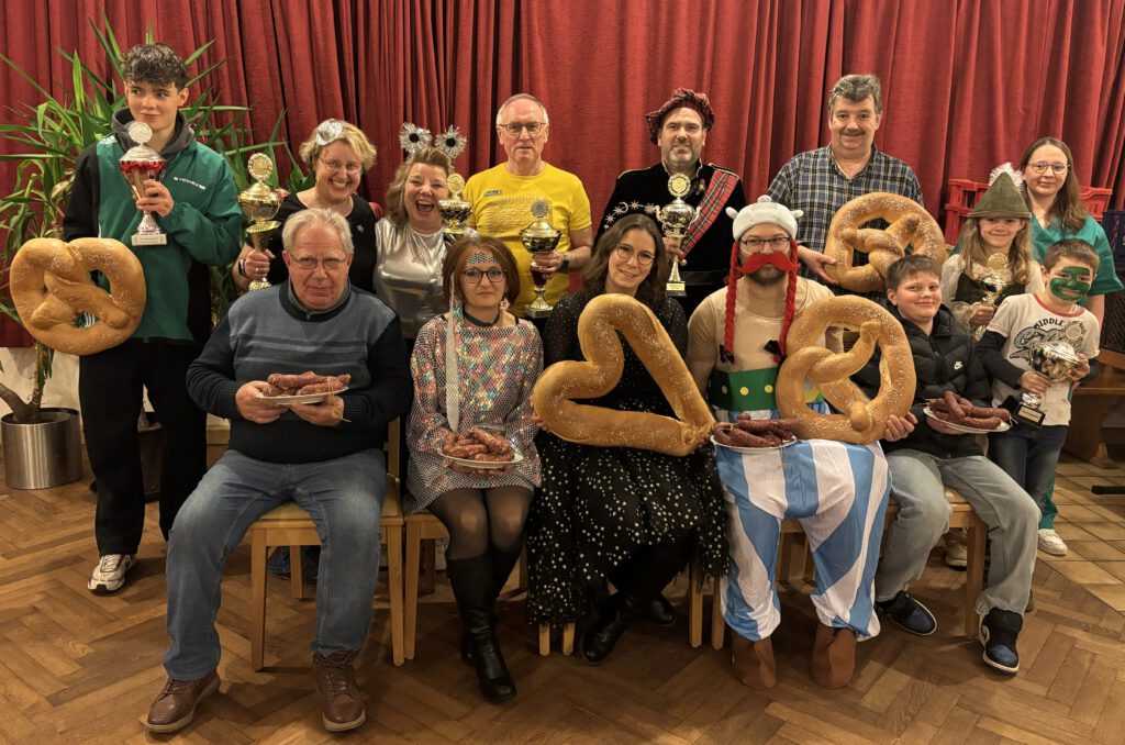 Wiesenthau. Kurz vor der Fastenzeit hieß es bei der ZSG Germania 1900 Wiesenthau e.V. wieder Kraft tanken: Nach der Verteilung von 700 kleinen Brezen und 180 Würsten an knapp 90 teilnehmende Schützinnen und Schützen, begrüßte 1.Vorstand Benedikt Bartosch die verkleideten Mitglieder bei der Preisverteilung des Brezenschießens.